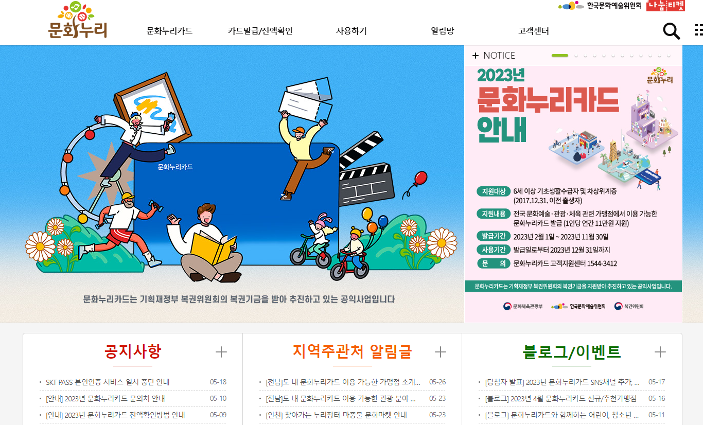 문화누리카드홈페이지https://www.mnuri.kr 에접속하여 신청가능합니다.