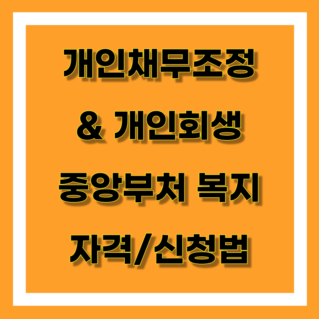 "중앙부처복지사업 개인채무조정"은 감당할 수 없는 부채로 어려움을 겪고 있는 대한민국 개인을 위한 부채 조정 프로그램입니다. 이 프로그램은 보건복지부가 관리하며 개인이 재정 관리를 회복하고 부채를 상환할 수 있도록 상담 및 재정 지원을 제공합니다.