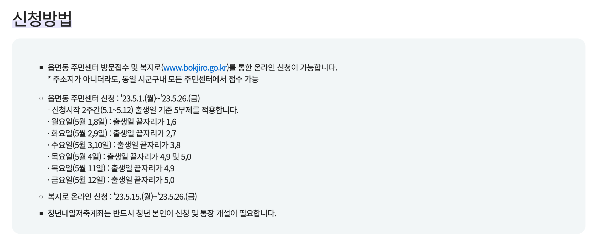 청년내일저축계좌를 신청하시기 전에 미리 본인명의의 저축계좌를 계설해 놓으시기 바랍니다.