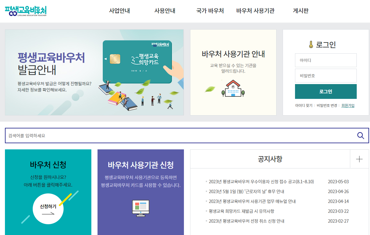 평생 교육 바우처신청 사이트